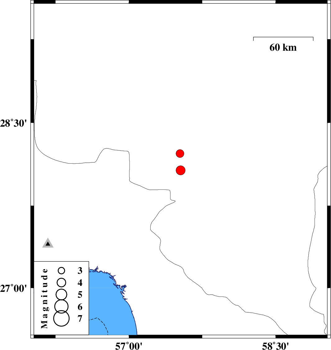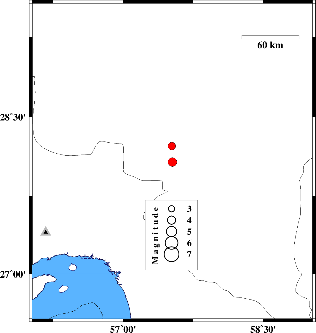 | 2021/07/05 | 07:37:15.9 | 12:07:15.9 | 28.222 | 57.523 | 12 | ML:3.7 | Kerman Province, 35 km North-West of Kahnuj |