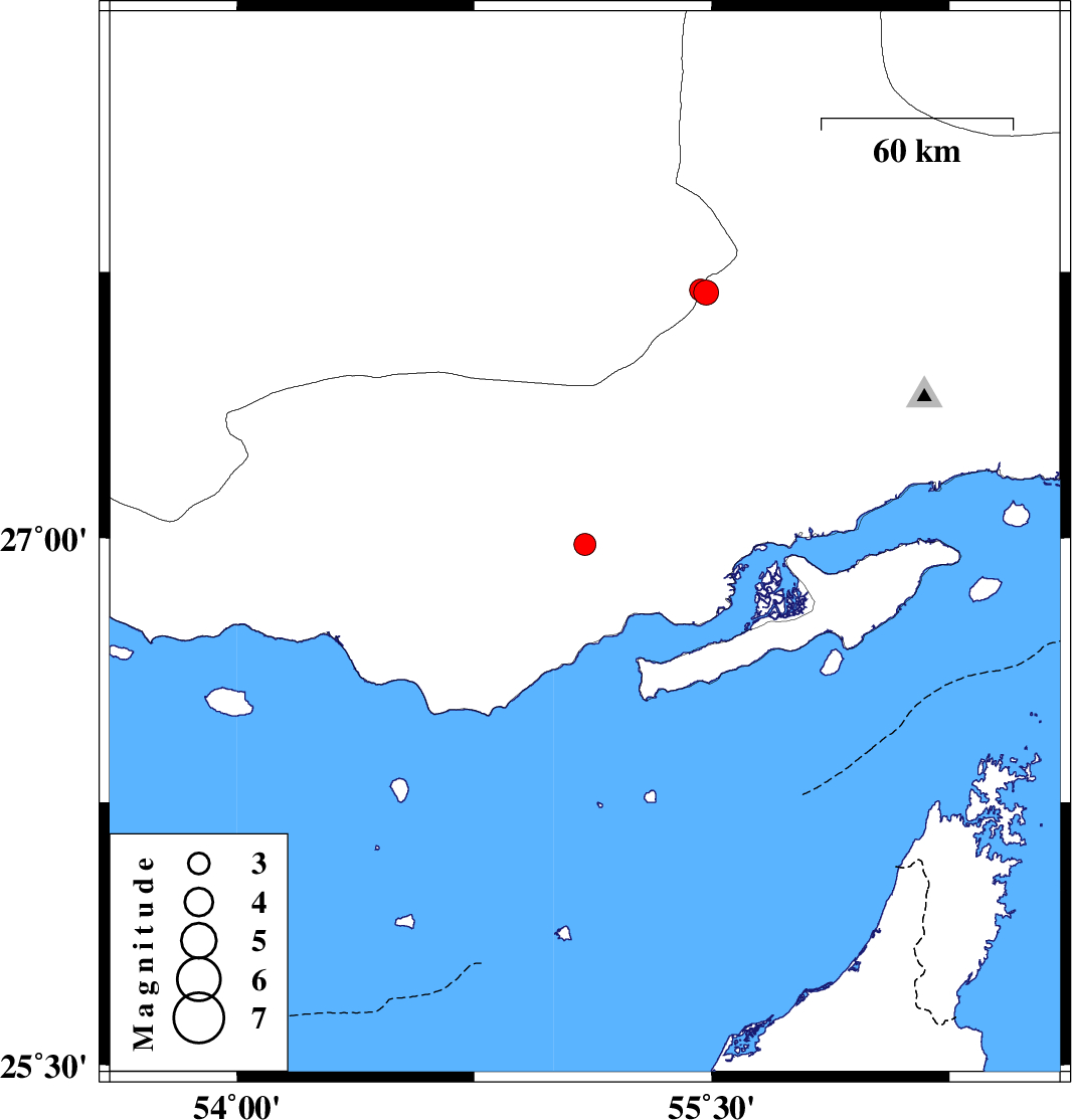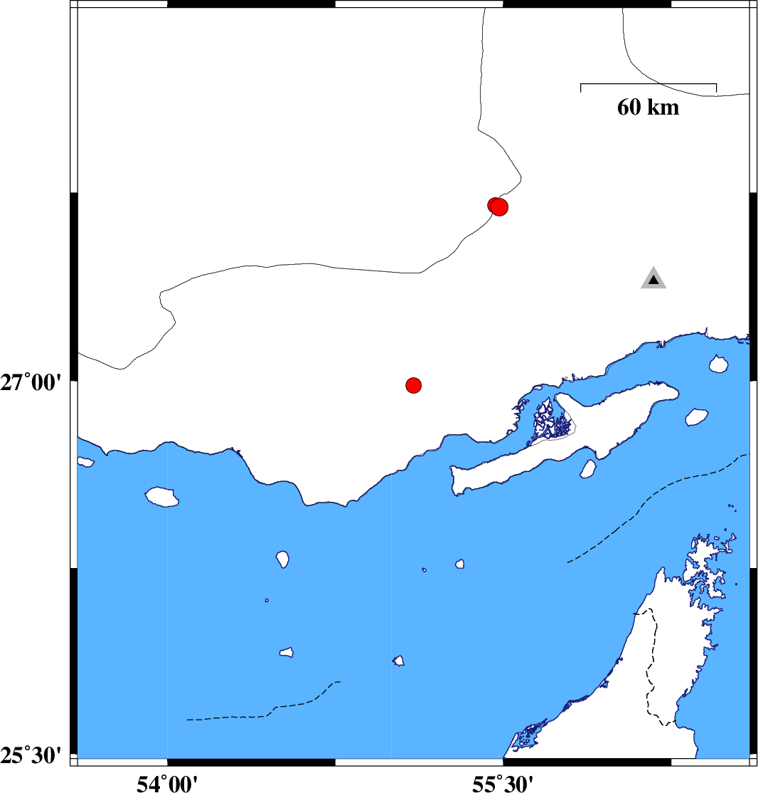 | 2021/07/12 | 17:45:29.2 | 22:15:29.2 | 26.981 | 55.099 | 12 | ML:3.1 | Hormozgan Province, 56 km North-East of Bandar-e lengeh | ||