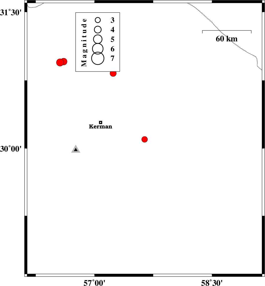 | 2021/07/03 | 07:10:50.1 | 11:40:50.1 | 30.828 | 57.238 | 17 | ML:3.7 | Kerman Province, 64 km -East of Zarand | ||