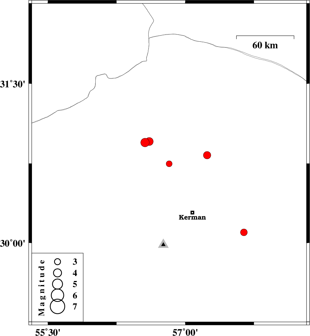 | 2021/07/03 | 07:10:50.1 | 11:40:50.1 | 30.828 | 57.238 | 17 | ML:3.7 | Kerman Province, 64 km -East of Zarand | ||