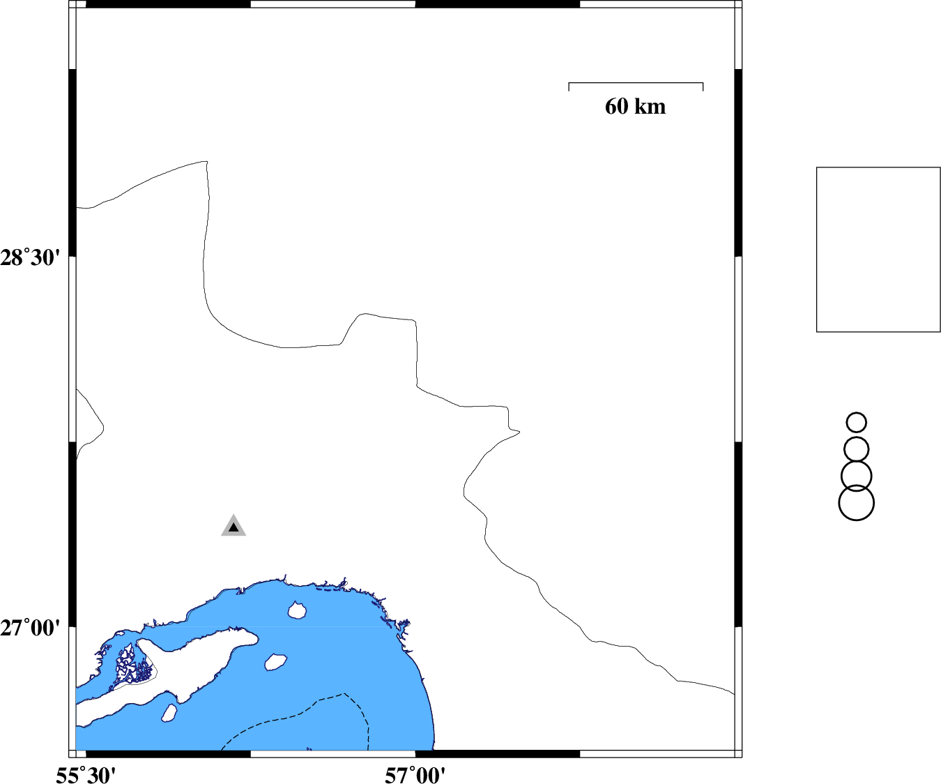 | 2021/08/22 | 22:27:49.2 | 02:57:49.2 | 28.078 | 55.632 | 12 | ML:4.1 | Hormozgan Province, 37 km South-West of Hajiabad |