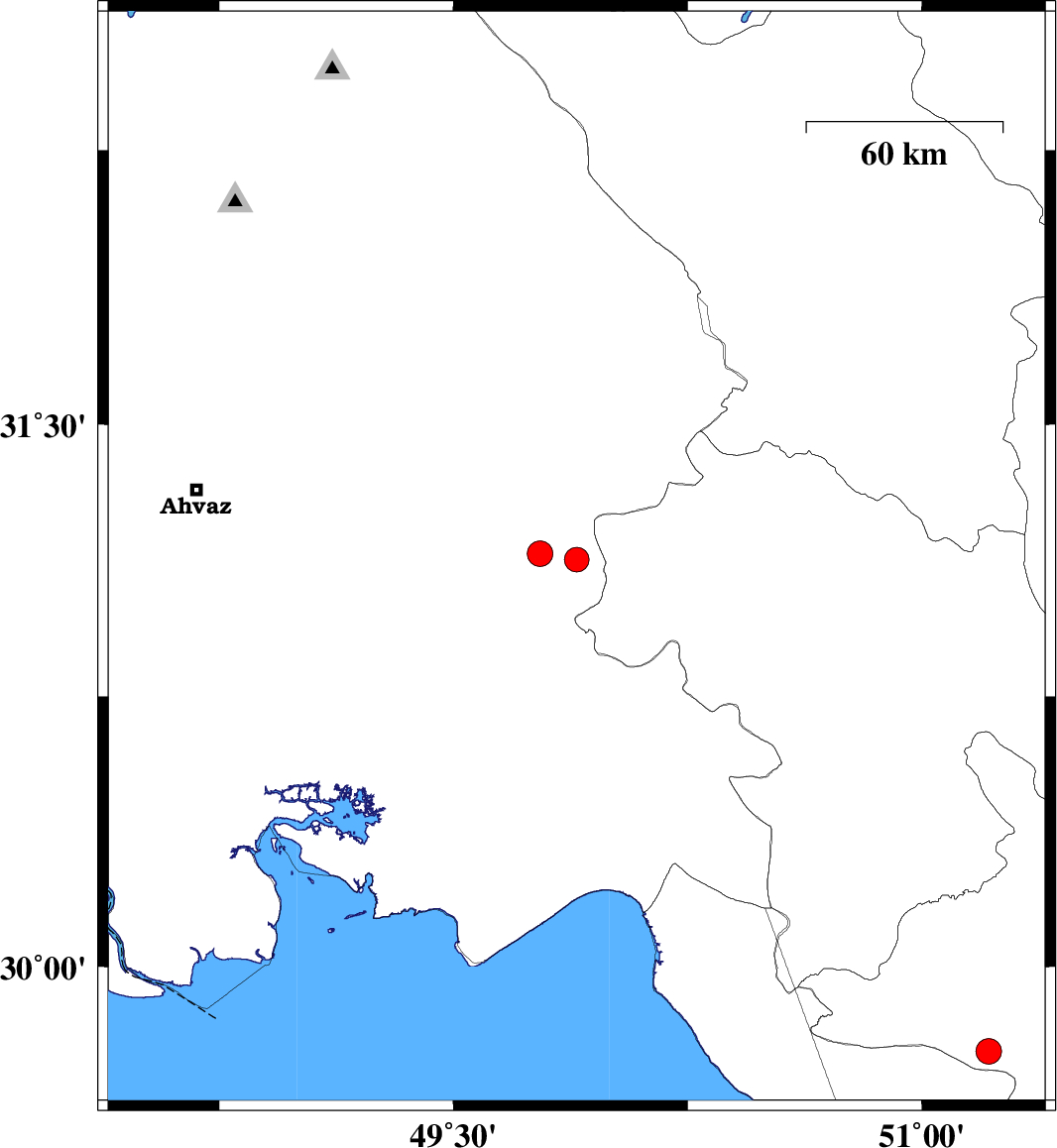 Map Region : lat:29.628-32.628  lon:48.395-51.395