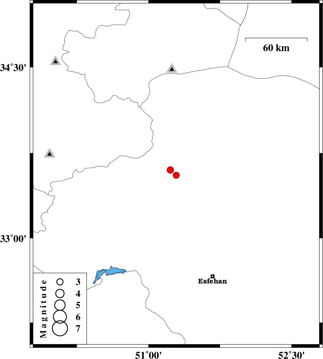 | 2021/09/11 | 02:23:18.2 | 06:53:18.2 | 33.602 | 51.23 | 12 | ML:3.2 | Esfahan Province, 47 km South-West of Kashan |