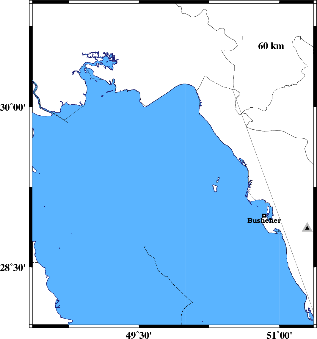 | 2021/09/14 | 04:48:06.7 | 09:18:06.7 | 29.457 | 49.863 | 12 | ML:3.7 | Persian Gulf, 64 km South-West of Bandar-e genaveh |