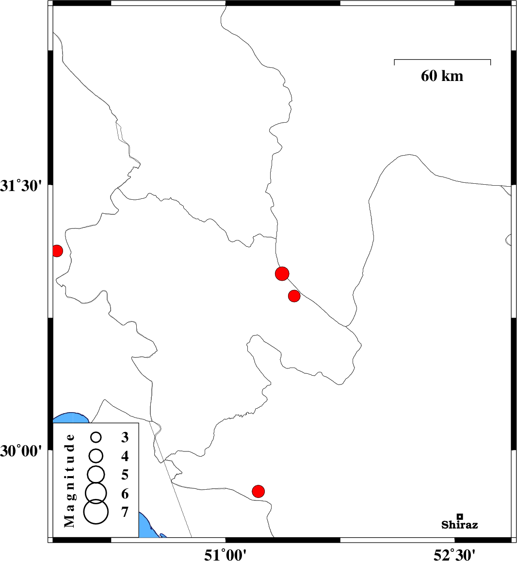 | 2021/09/02 | 16:23:56.2 | 20:53:56.2 | 29.764 | 51.214 | 12 | ML:3.6 | Fars Province, 56 km North of Borazjan | ||