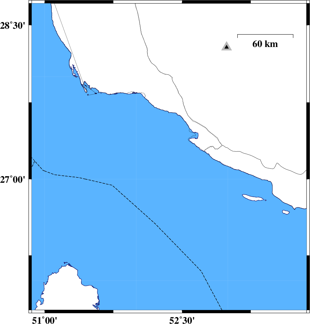 | 2021/09/28 | 16:52:41.0 | 20:22:41.0 | 27.21 | 52.359 | 17 | ML:3.3 | Persian Gulf, 69 km South of Jam | ||