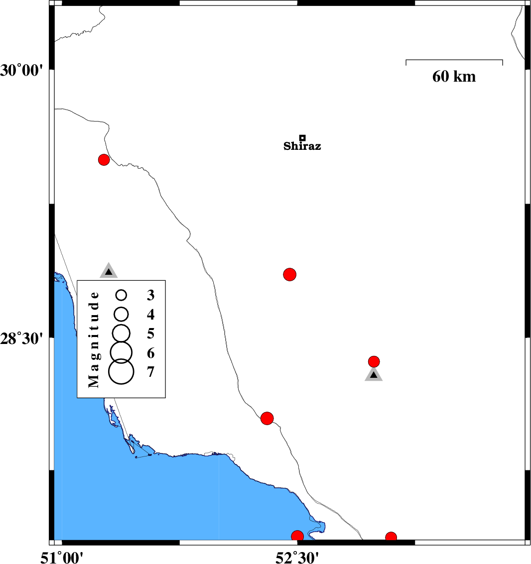| 2021/09/19 | 22:11:08.1 | 02:41:08.1 | 27.372 | 52.5 | 12 | ML:3.5 | Persian Gulf, 43 km South-West of Mehr |