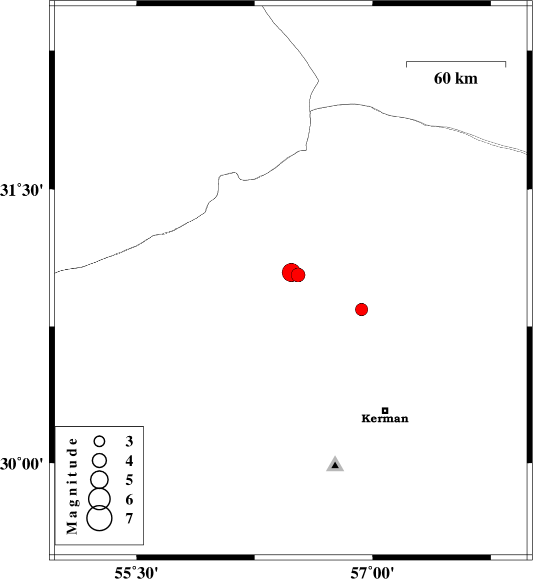 | 2021/10/16 | 12:59:18.9 | 16:29:18.9 | 30.977 | 56.524 | 1 | ML:4 | Kerman Province, 19 km North of Zarand | ||