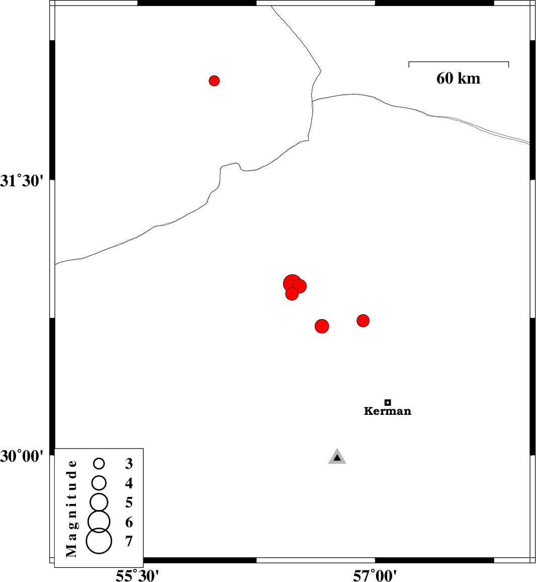 | 2021/09/26 | 16:53:59.0 | 20:23:59.0 | 32.086 | 55.986 | 12 | ML:3 | Yazd Province, 77 km North-East of Bafq |