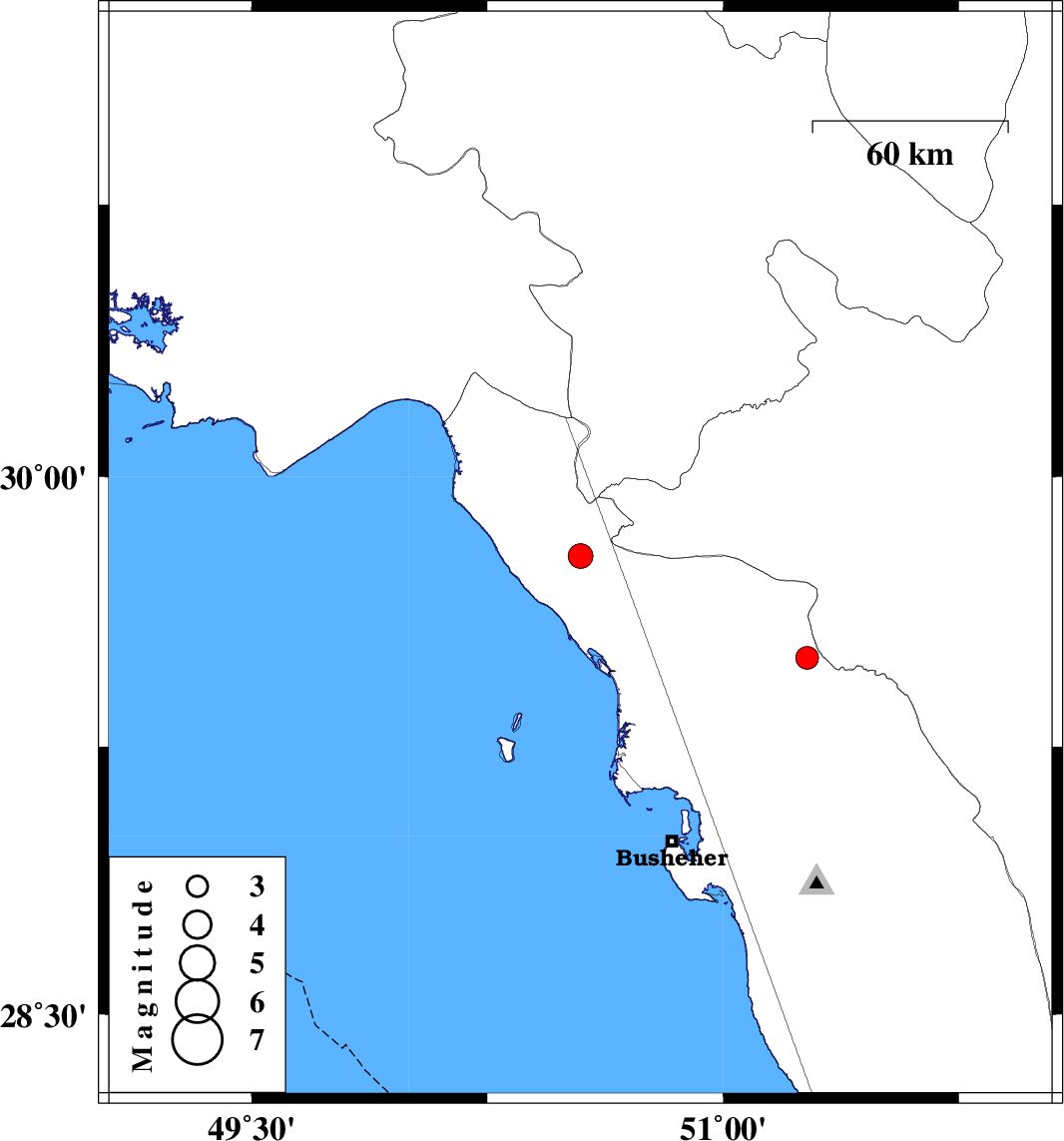 | 2021/10/11 | 17:13:48.9 | 20:43:48.9 | 29.497 | 51.267 | 17 | ML:3.2 | Bushehr Province, 27 km North of Borazjan |