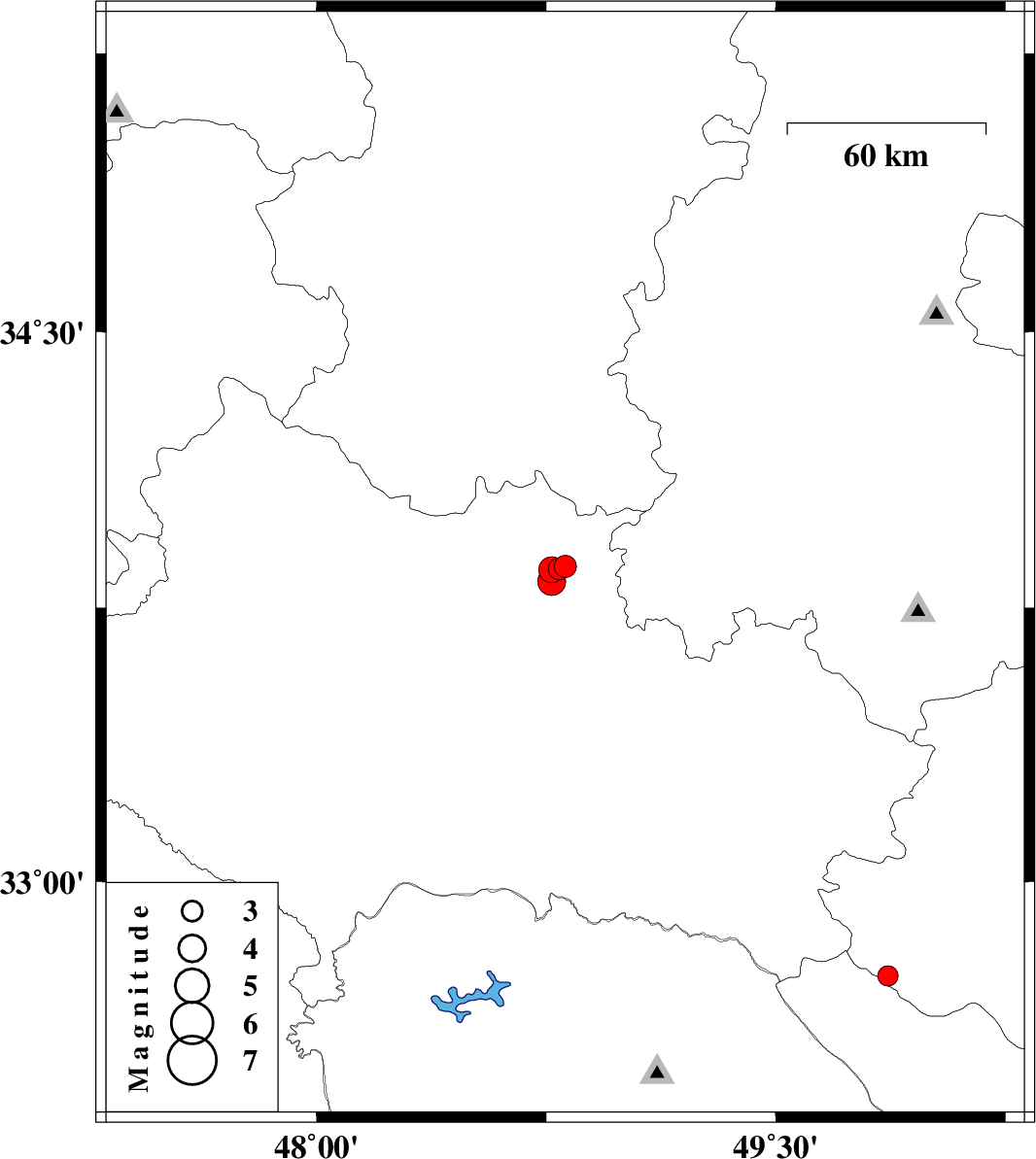 | 2021/11/11 | 08:24:28.4 | 11:54:28.4 | 33.822 | 48.768 | 12 | ML:4.1 | Lorestan Province, 8 km of Borujerd |