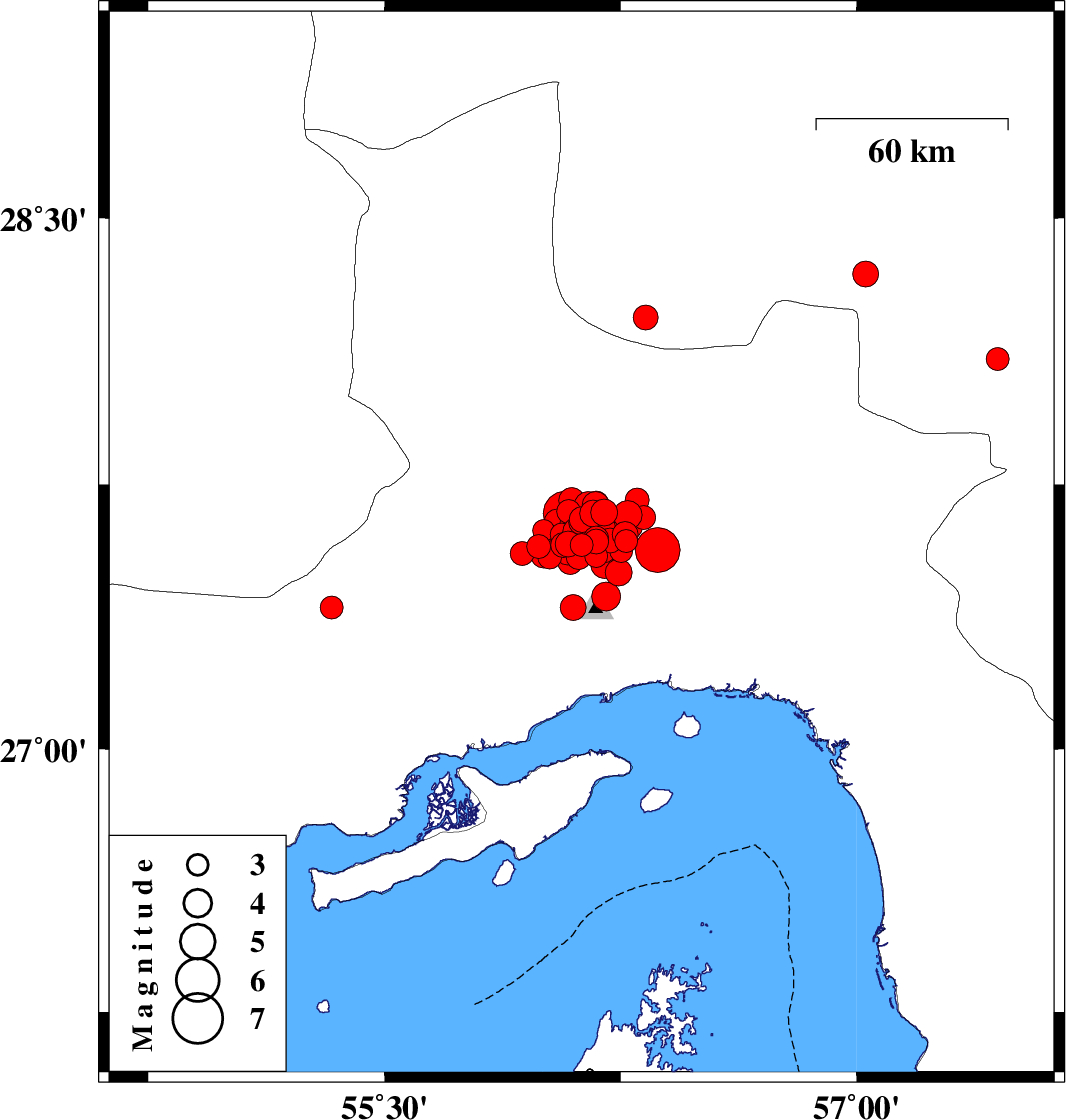 2021/11/14 12:52:38.6 16:22:38.6 27.52356.19915 ML:4 Hormozgan Province, 39 km North of Bandar-e abbas
