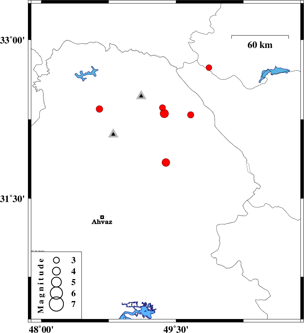 | 2021/11/06 | 10:20:14.9 | 13:50:14.9 | 32.349 | 48.648 | 12 | ML:3.4 | Khoozestan Province, 24 km -East of Dezful |