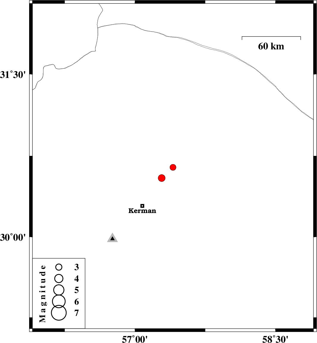 | 2021/11/28 | 17:52:01.4 | 21:22:01.4 | 30.546 | 57.286 | 7 | ML:3.4 | Kerman Province, 35 km North-East of Kerman |