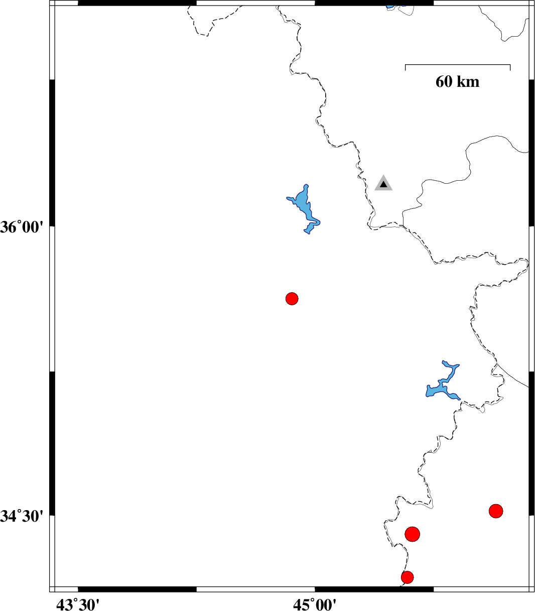 | 2021/12/02 | 18:06:32.3 | 21:36:32.3 | 35.626 | 44.853 | 10 | ML:3.5 | Iraq, 54 km -West of Sulaymaniyah | ||