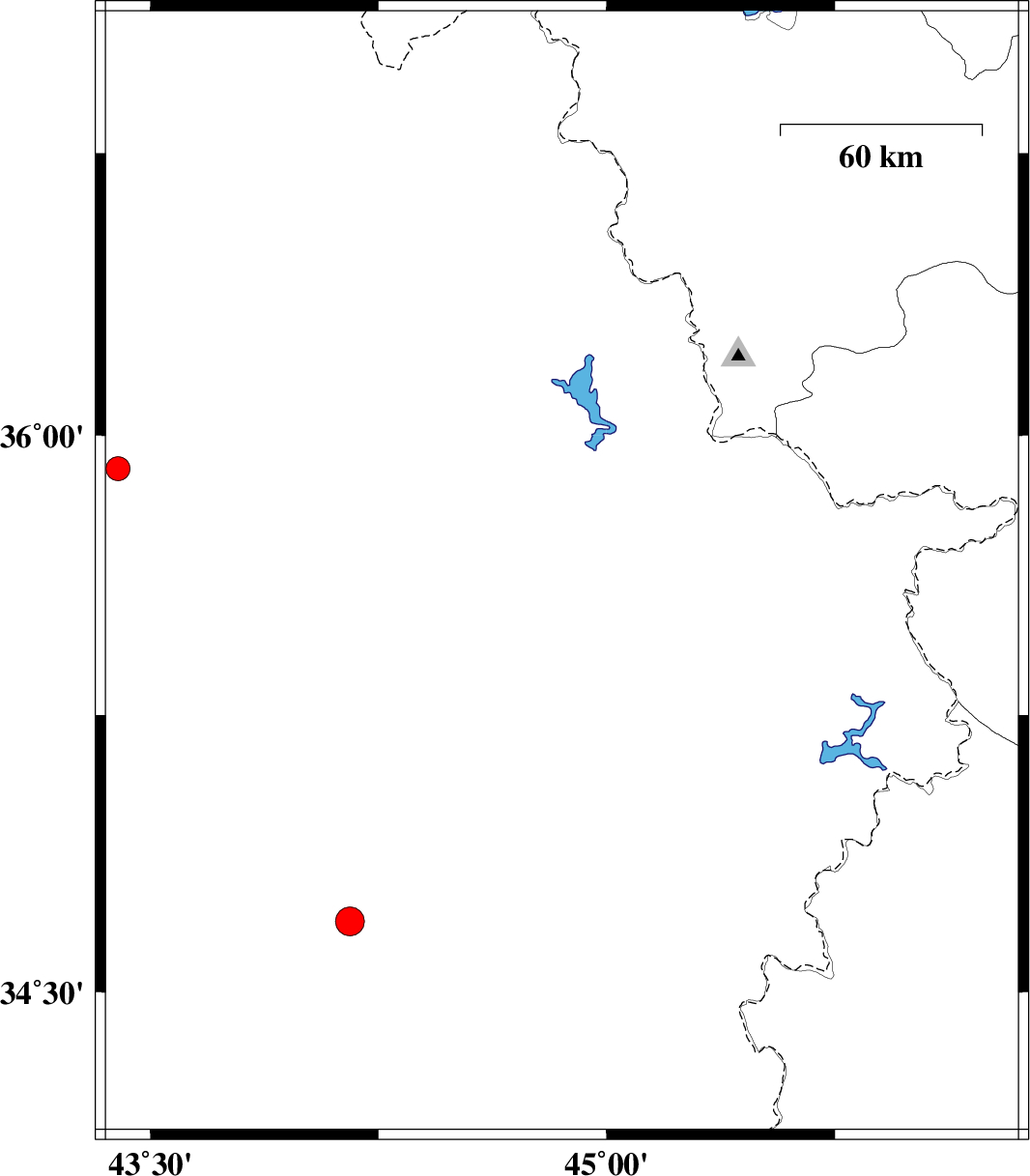 | 2021/12/02 | 18:06:32.3 | 21:36:32.3 | 35.626 | 44.853 | 10 | ML:3.5 | Iraq, 54 km -West of Sulaymaniyah | ||