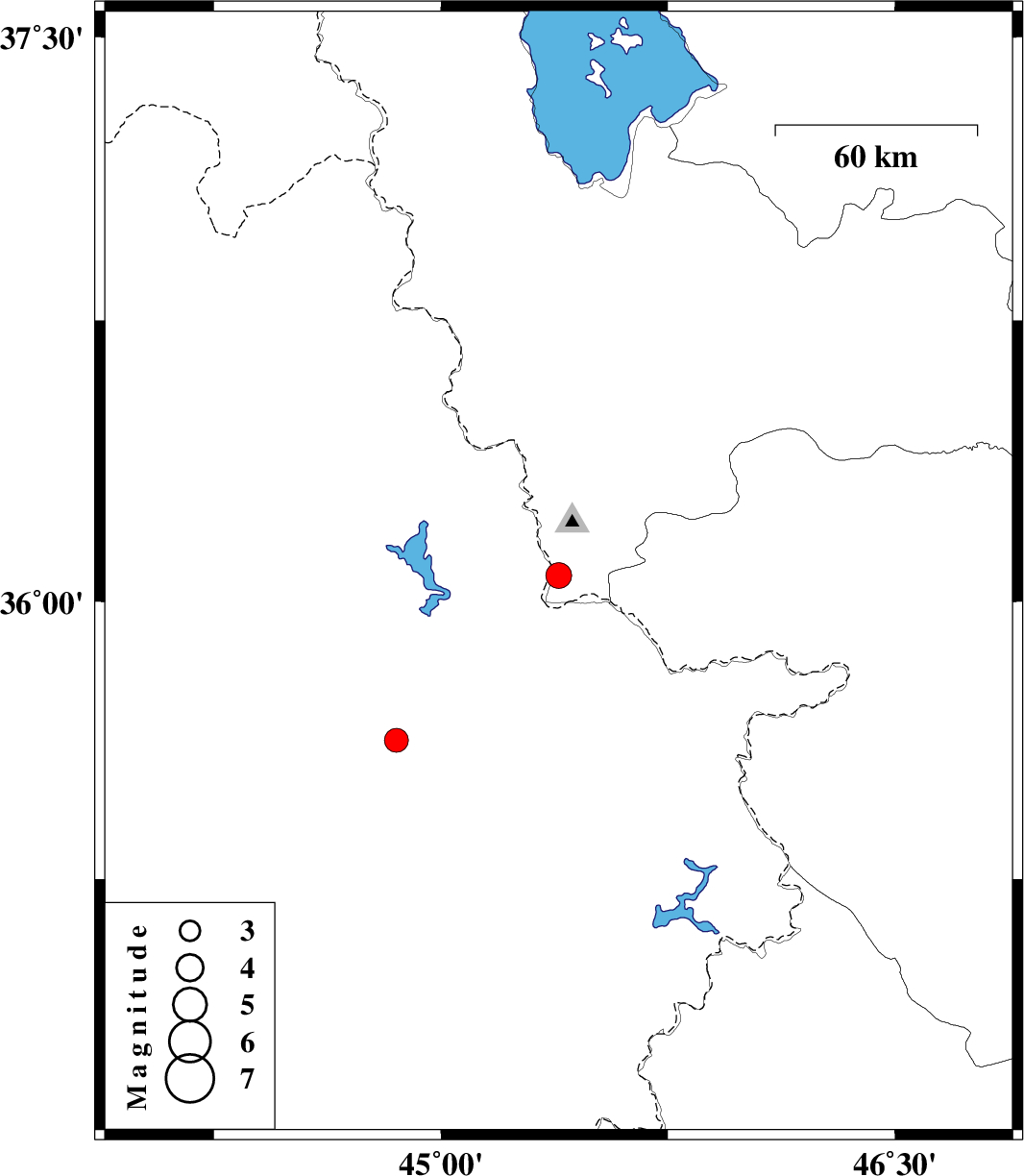 | 2021/12/02 | 18:06:32.3 | 21:36:32.3 | 35.626 | 44.853 | 10 | ML:3.5 | Iraq, 54 km -West of Sulaymaniyah |