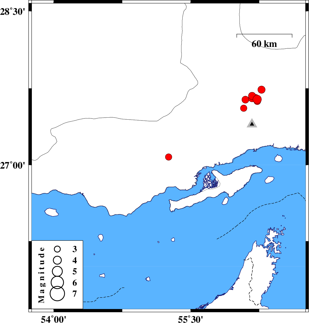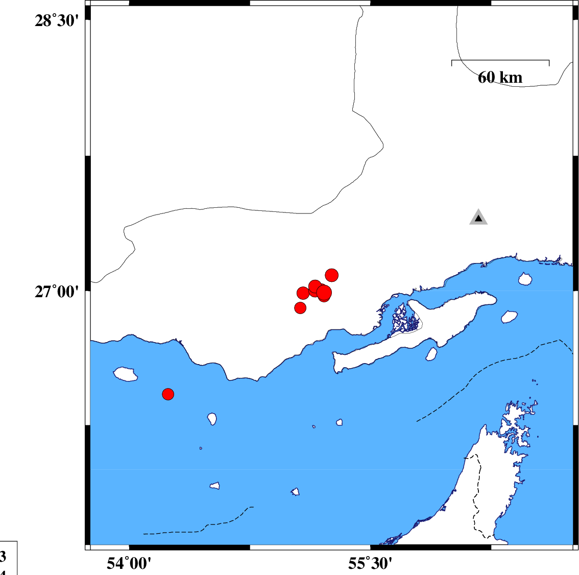 | 2021/12/10 | 02:54:06.3 | 06:24:06.3 | 27.078 | 55.258 | 14 | ML:3.3 | Hormozgan Province, 74 km North-East of Bandar-e lengeh | ||
