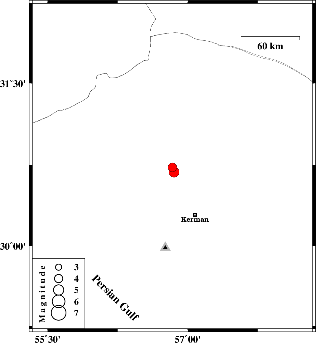 | 2021/12/12 | 09:46:35.1 | 13:16:35.1 | 30.727 | 56.837 | 12 | ML:4.2 | Kerman Province, 27 km -East of Zarand | ||