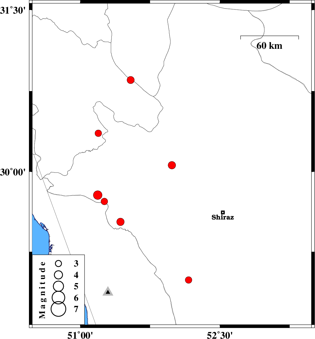 | 2021/12/22 | 00:06:23.2 | 03:36:23.2 | 29.722 | 51.258 | 12 | ML:3.2 | Fars Province, 40 km North-West of Kazerun | ||