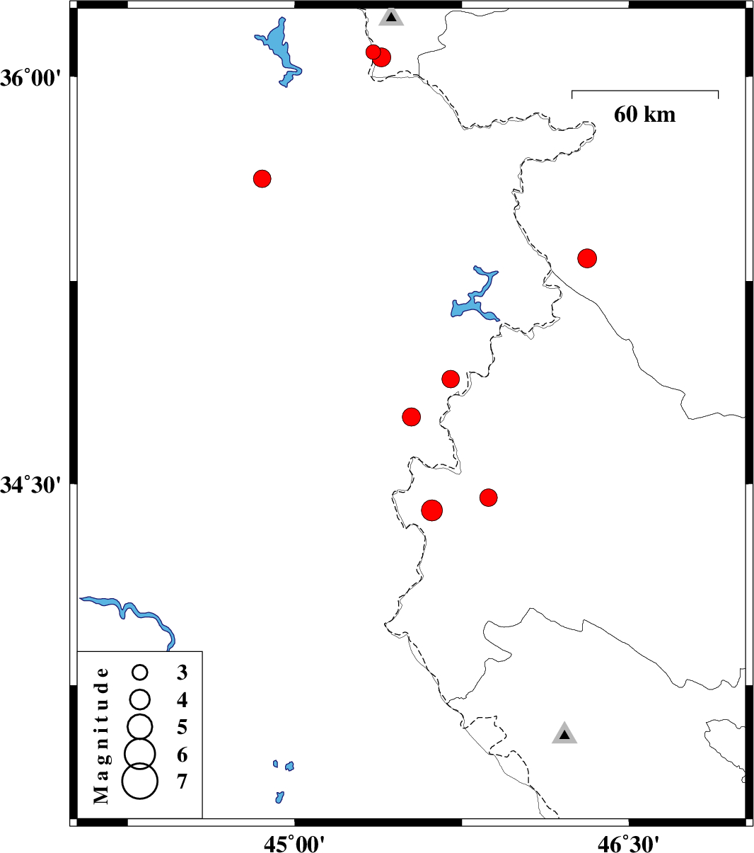 | 2021/12/22 | 08:07:49.6 | 11:37:49.6 | 36.089 | 45.351 | 12 | ML:3 | Iraq, 13 km -West of Sardasht | ||