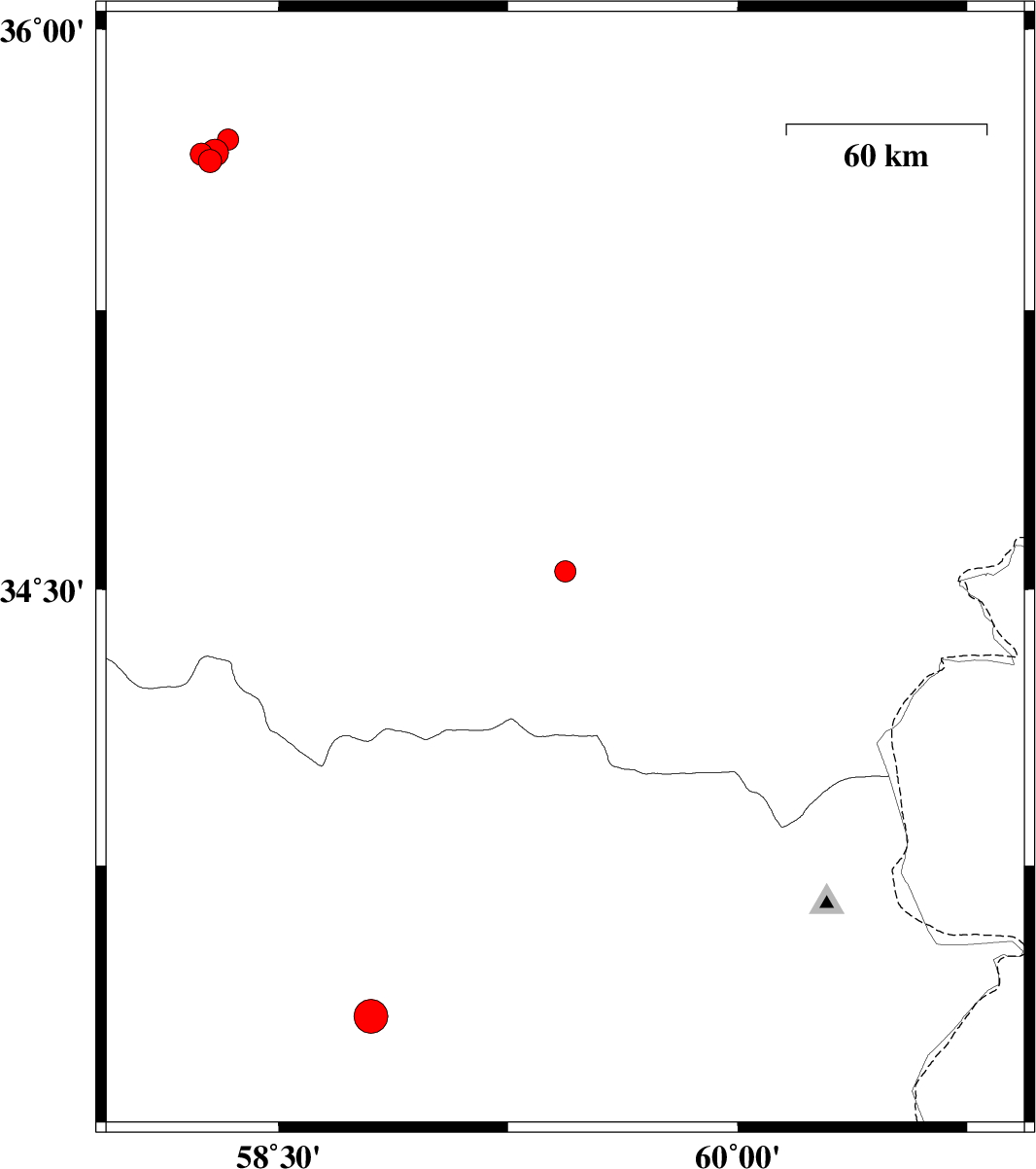 | 2021/12/23 | 15:55:29.8 | 19:25:29.8 | 35.668 | 58.248 | 12 | ML:3.3 | Khorasan(center) Province, 52 km North-West of Kashmar | ||