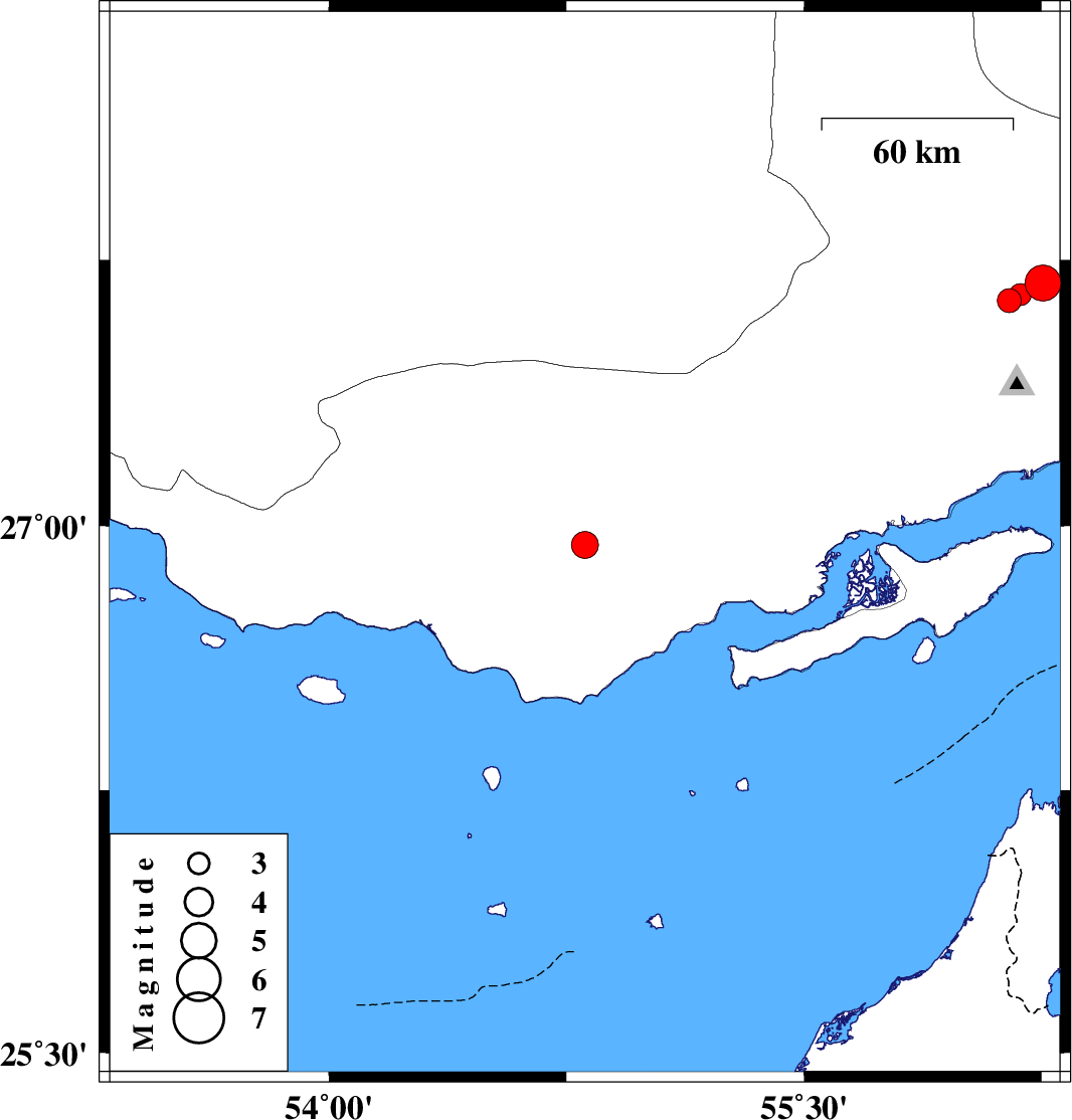 | 2021/12/27 | 07:31:55.4 | 11:01:55.4 | 27.685 | 56.255 | 8 | ML:5.1 | Hormozgan Province, 56 km North of Bandar-e abbas | ||