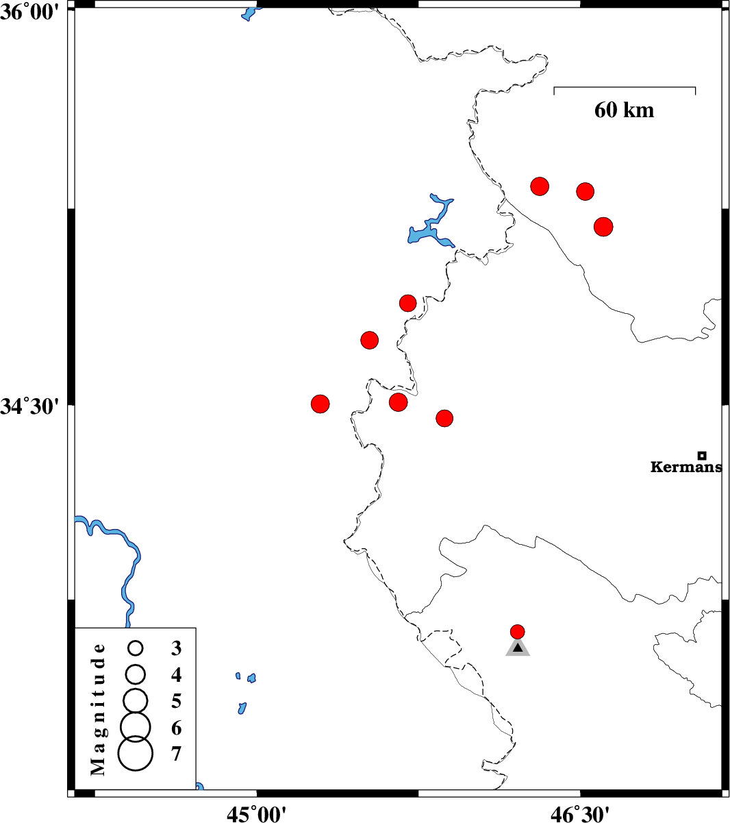 | 2021/12/14 | 22:02:03.8 | 01:32:03.8 | 34.449 | 45.87 | 12 | ML:3.5 | Kermanshah Province, 2 km of Sar-e pol-e zahab | ||