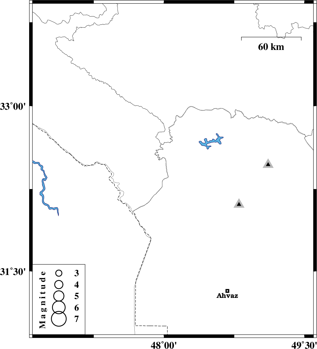 | 2022/01/05 | 00:48:43.5 | 04:18:43.5 | 32.419 | 48.096 | 12 | ML:3.3 | Khoozestan Province, 24 km -West of Andimeshk |