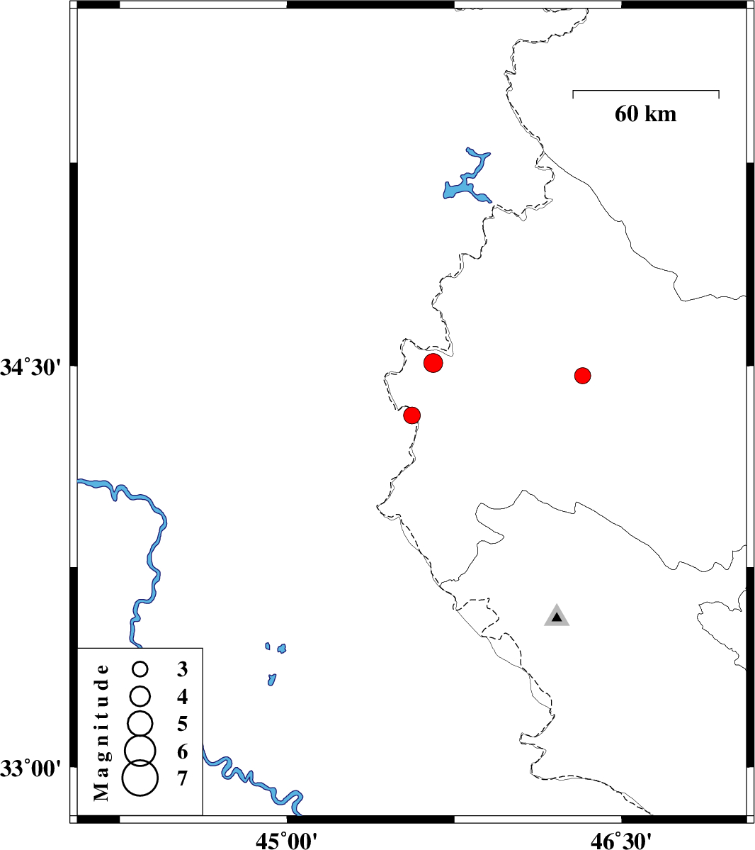 | 2022/01/08 | 19:13:41.5 | 22:43:41.5 | 34.464 | 46.325 | 10 | ML:3.3 | Kermanshah Province, 40 km -East of Sar-e pol-e zahab | ||
