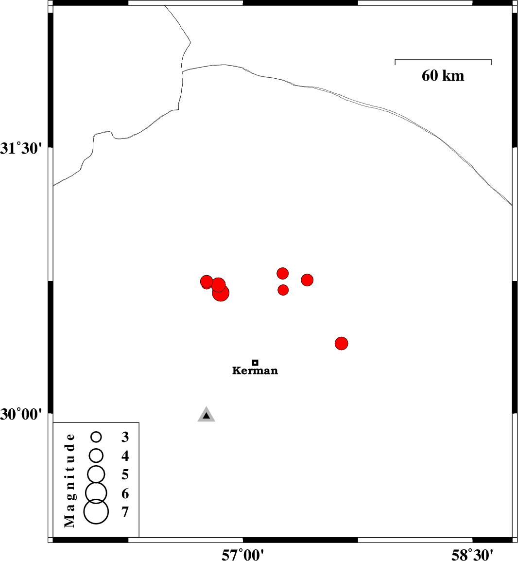 | 2021/12/29 | 07:24:23.1 | 10:54:23.1 | 30.396 | 57.643 | 12 | ML:3.8 | Kerman Province, 55 km North-East of Kerman | ||