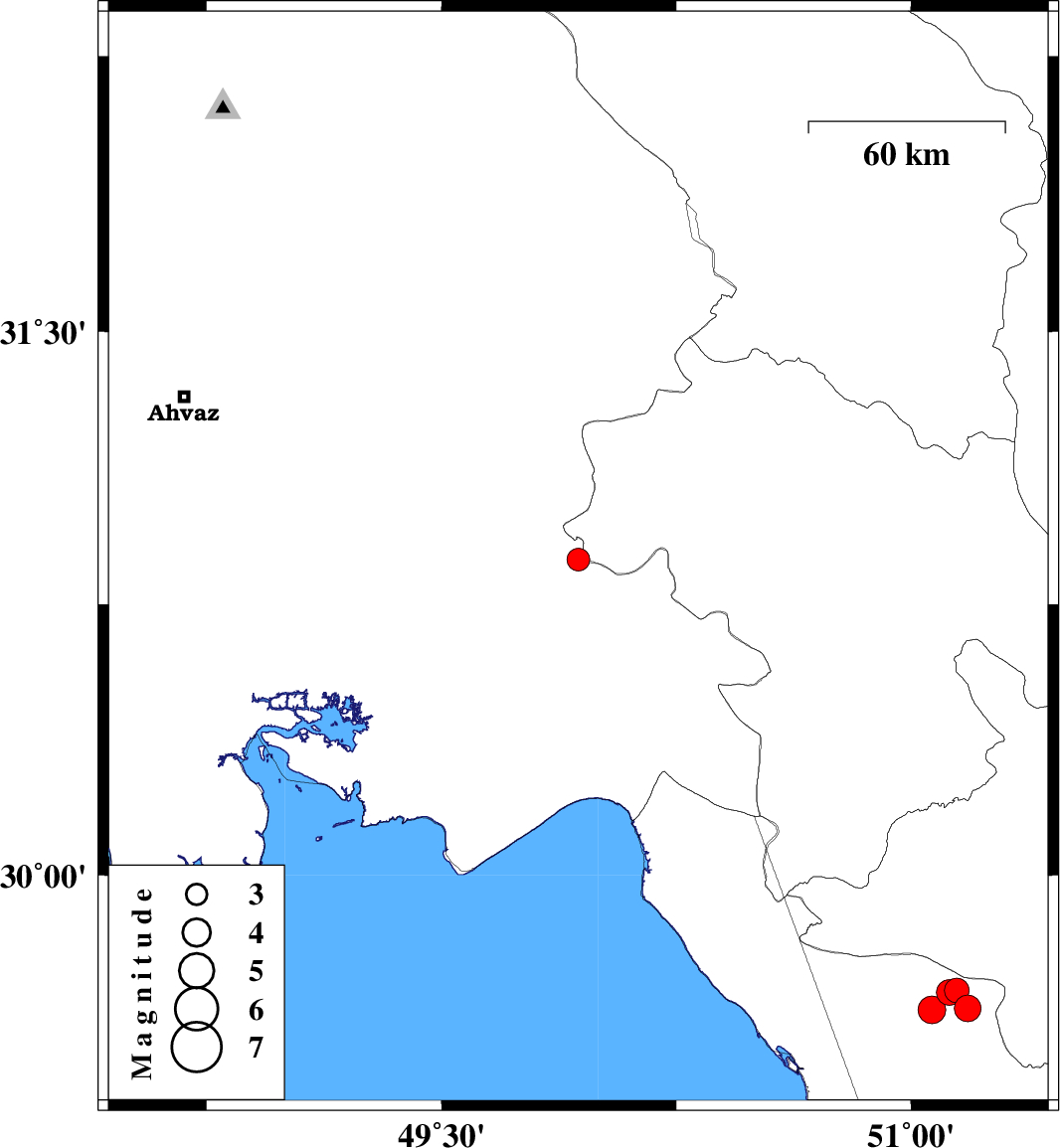 | 2022/01/13 | 12:32:47.4 | 16:02:47.4 | 30.873 | 49.937 | 12 | ML:3.2 | Khoozestan Province, 25 km North-East of Omidiyeh | ||