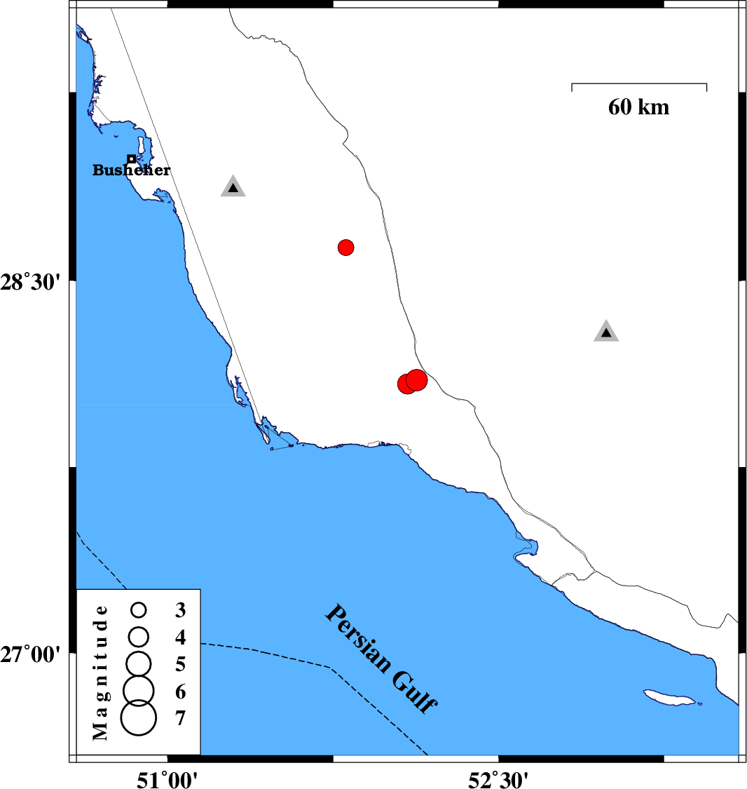 | 2021/12/27 | 06:52:30.3 | 10:22:30.3 | 28.631 | 51.807 | 12 | ML:3.2 | Bushehr Province, 43 km -East of Khormog |
