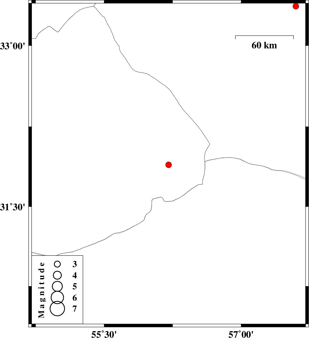 | 2022/01/23 | 16:09:19.2 | 19:39:19.2 | 33.364 | 57.6 | 10 | ML:3 | Yazd Province, 68 km South-East of Tabas |