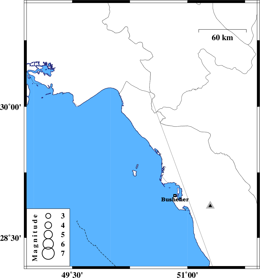| 2022/01/30 | 23:47:45.4 | 03:17:45.4 | 29.672 | 50.406 | 12 | ML:3.3 | Bushehr Province, 15 km -West of Bandar-e genaveh |