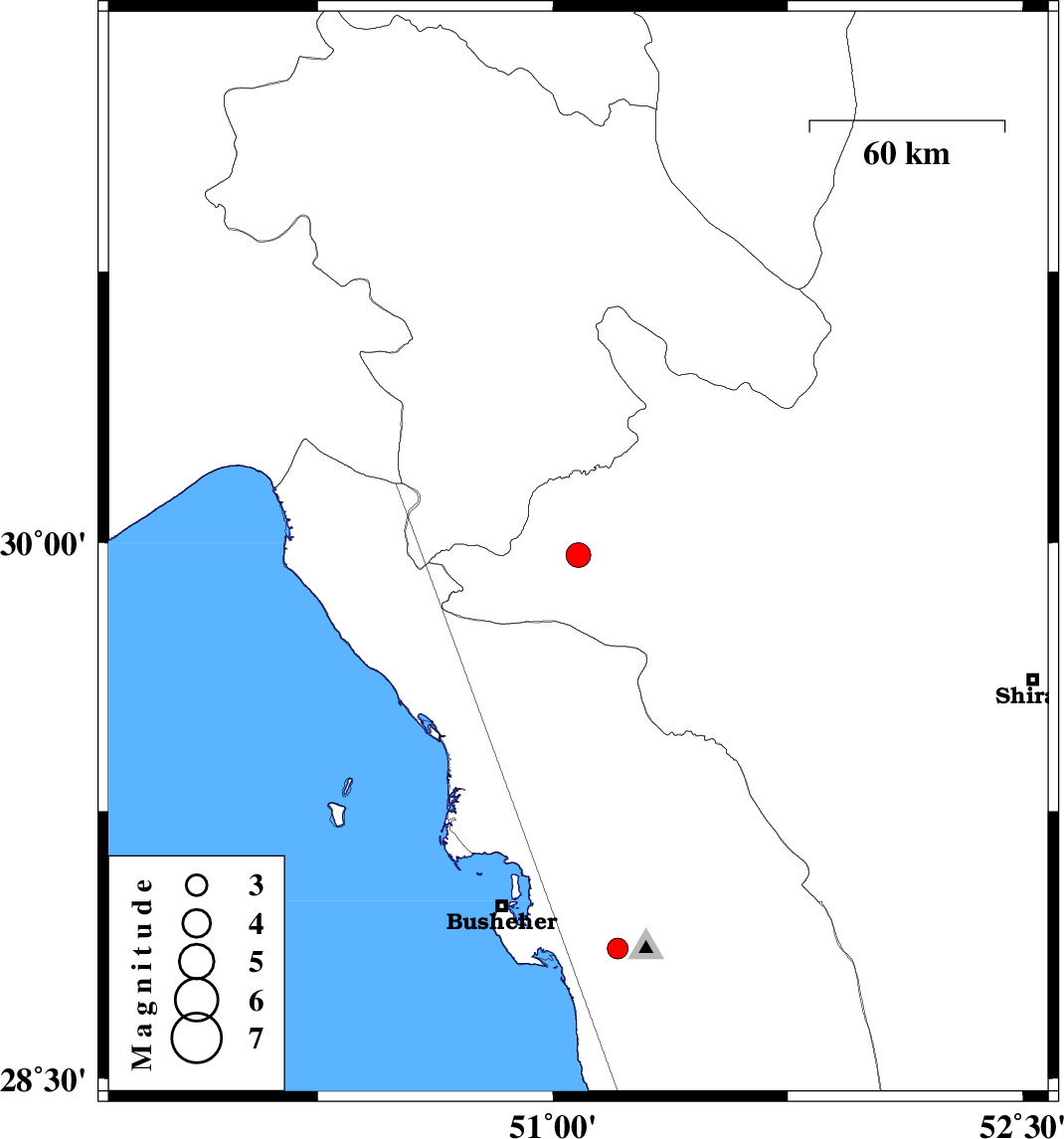 | 2022/02/11 | 23:16:09.9 | 02:46:09.9 | 28.865 | 51.207 | 9 | ML:3 | Bushehr Province, 5 km of Ahram |
