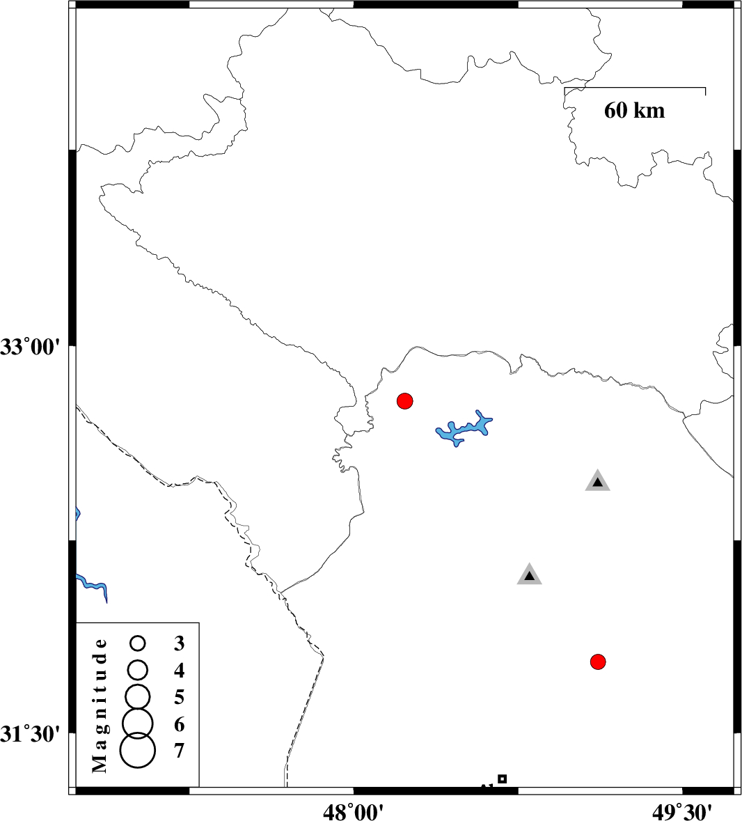 | 2022/02/17 | 09:35:40.3 | 13:05:40.3 | 32.788 | 48.233 | 10 | ML:3.3 | Khoozestan Province, 38 km North-West of Andimeshk | ||