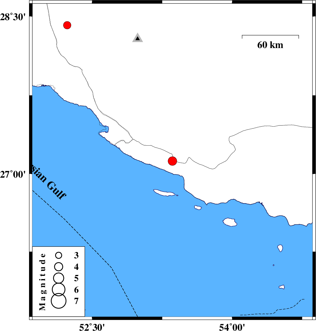 | 2022/03/04 | 10:46:13.9 | 14:16:13.9 | 27.122 | 53.36 | 12 | ML:4.3 | Hormozgan Province, 30 km South-East of Lamerd | ||