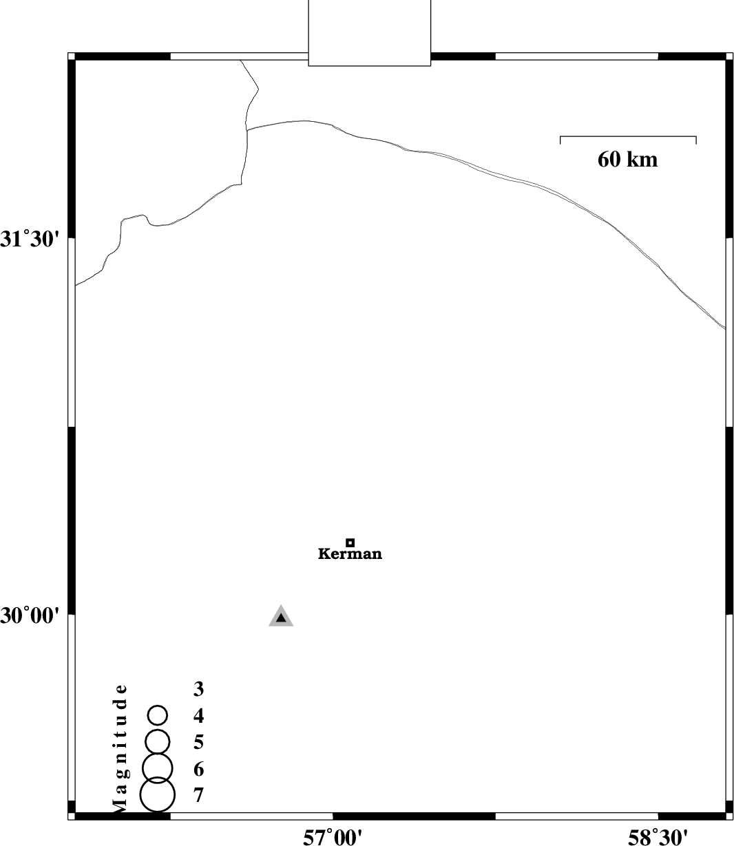 | 2022/03/01 | 00:39:59.3 | 04:09:59.3 | 30.707 | 57.281 | 12 | ML:3.2 | Kerman Province, 50 km North-East of Kerman |