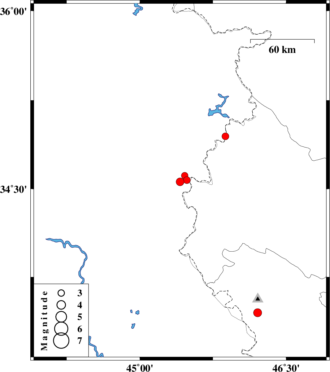 | 2022/04/08 | 00:58:49.0 | 05:28:49.0 | 34.561 | 45.413 | 12 | ML:3.6 | Iraq, 16 km -West of Qasr-E-Shirin | ||