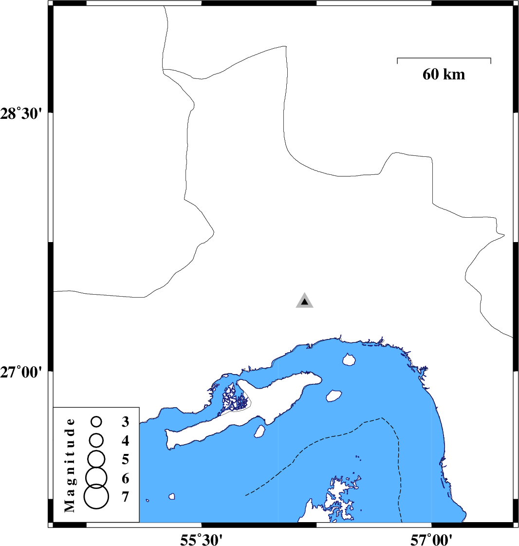 | 2022/04/23 | 21:30:35.6 | 02:00:35.6 | 27.613 | 56.032 | 12 | ML:3.6 | Hormozgan Province, 54 km North-West of Bandar-e abbas |