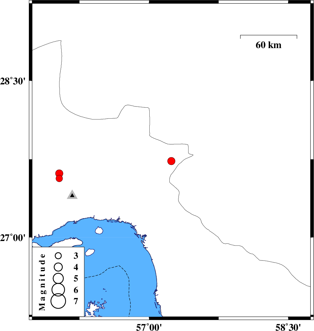 | 2022/04/27 | 03:03:09.6 | 07:33:09.6 | 27.566 | 56.032 | 12 | ML:3.3 | Hormozgan Province, 49 km North-West of Bandar-e abbas | ||