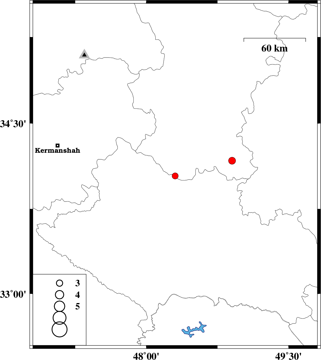 | 2022/05/03 | 08:30:58.9 | 13:00:58.9 | 34.04 | 48.304 | 12 | ML:3 | Lorestan Province, 19 km North of Aleshtar | ||