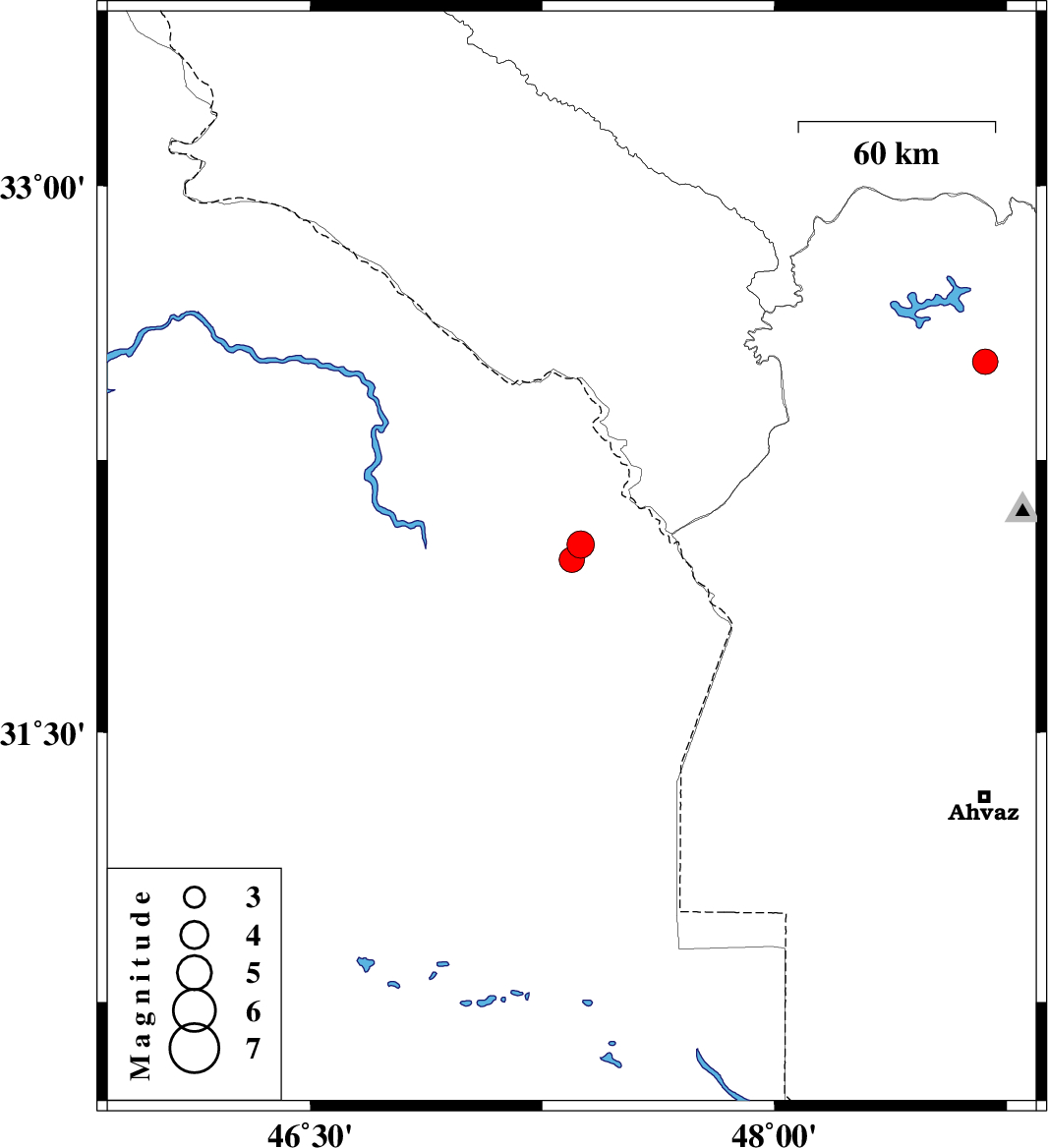 | 2022/05/17 | 19:02:01.0 | 23:32:01.0 | 31.975 | 47.345 | 12 | ML:3.7 | Iraq, 80 km South of Dehloran | ||