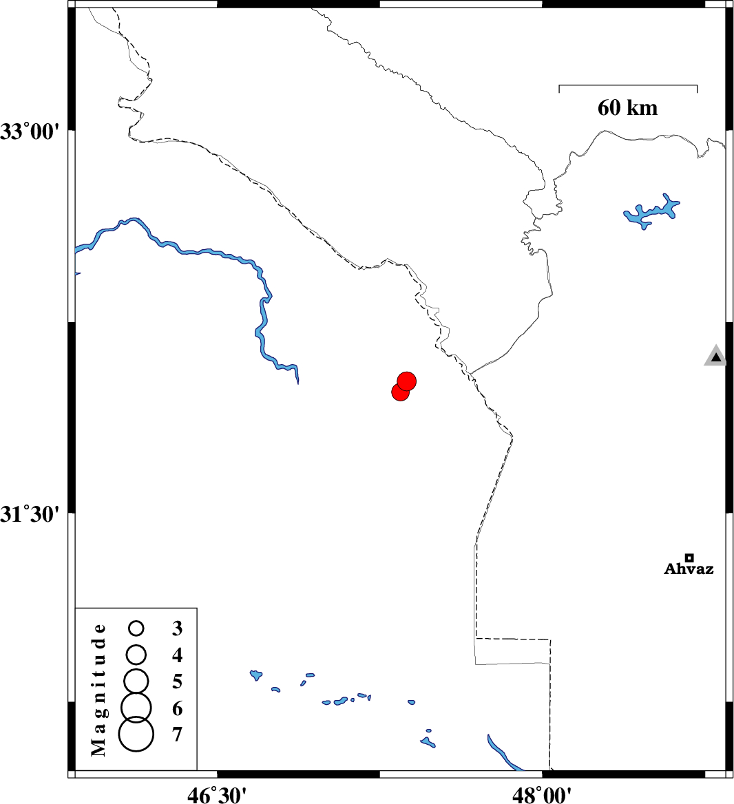 | 2022/05/17 | 19:02:01.0 | 23:32:01.0 | 31.975 | 47.345 | 12 | ML:3.7 | Iraq, 80 km South of Dehloran |