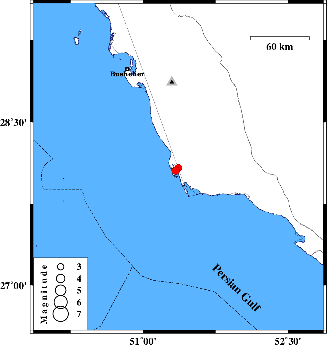 | 2022/05/21 | 15:03:09.1 | 19:33:09.1 | 28.082 | 51.366 | 12 | ML:3.4 | , 63 km South of Khormog |
