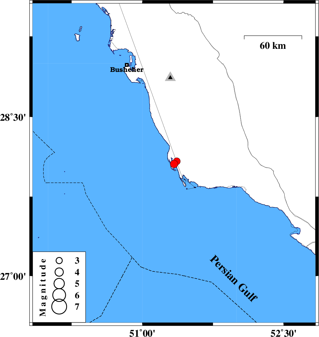 | 2022/05/21 | 15:03:09.1 | 19:33:09.1 | 28.082 | 51.366 | 12 | ML:3.4 | , 63 km South of Khormog |