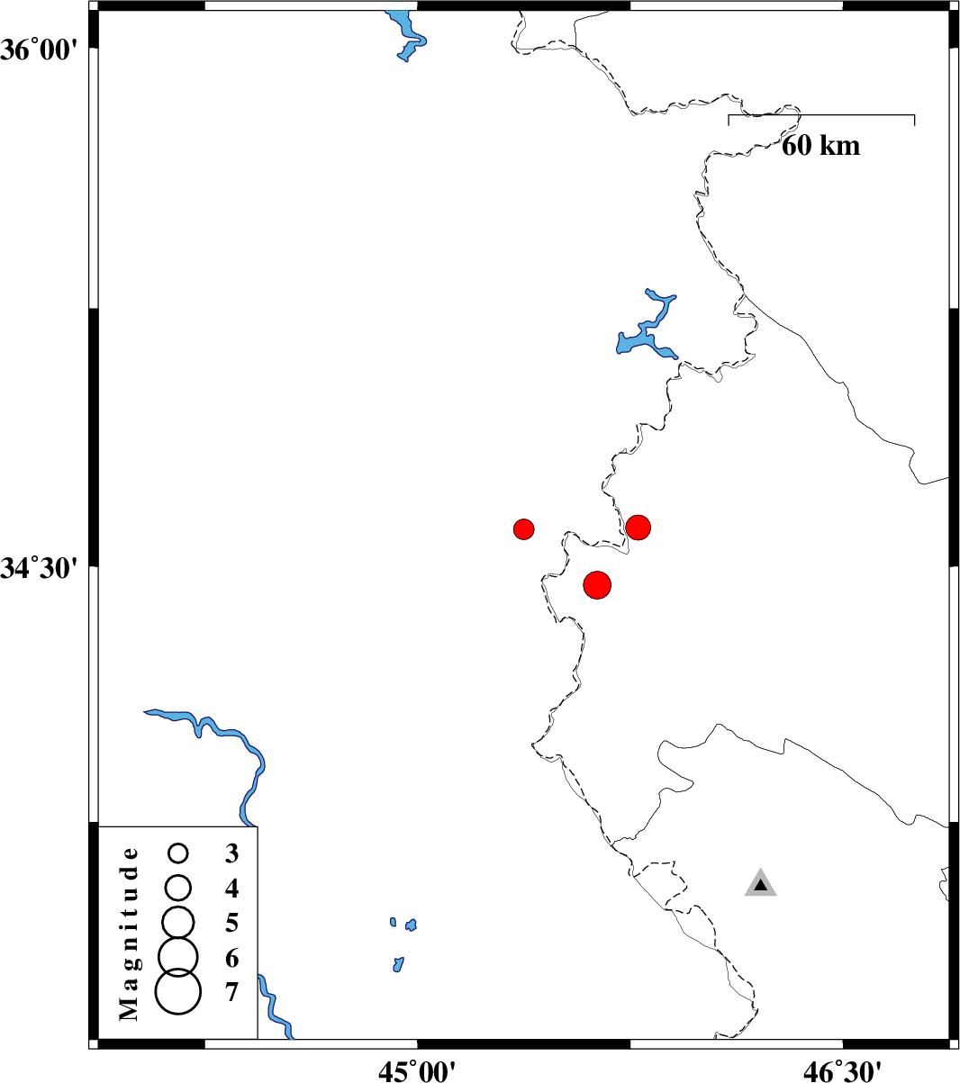 | 2022/05/29 | 05:52:48.9 | 10:22:48.9 | 34.613 | 45.778 | 24 | ML:4 | Kermanshah Province, 17 km South of Tazehabad | ||