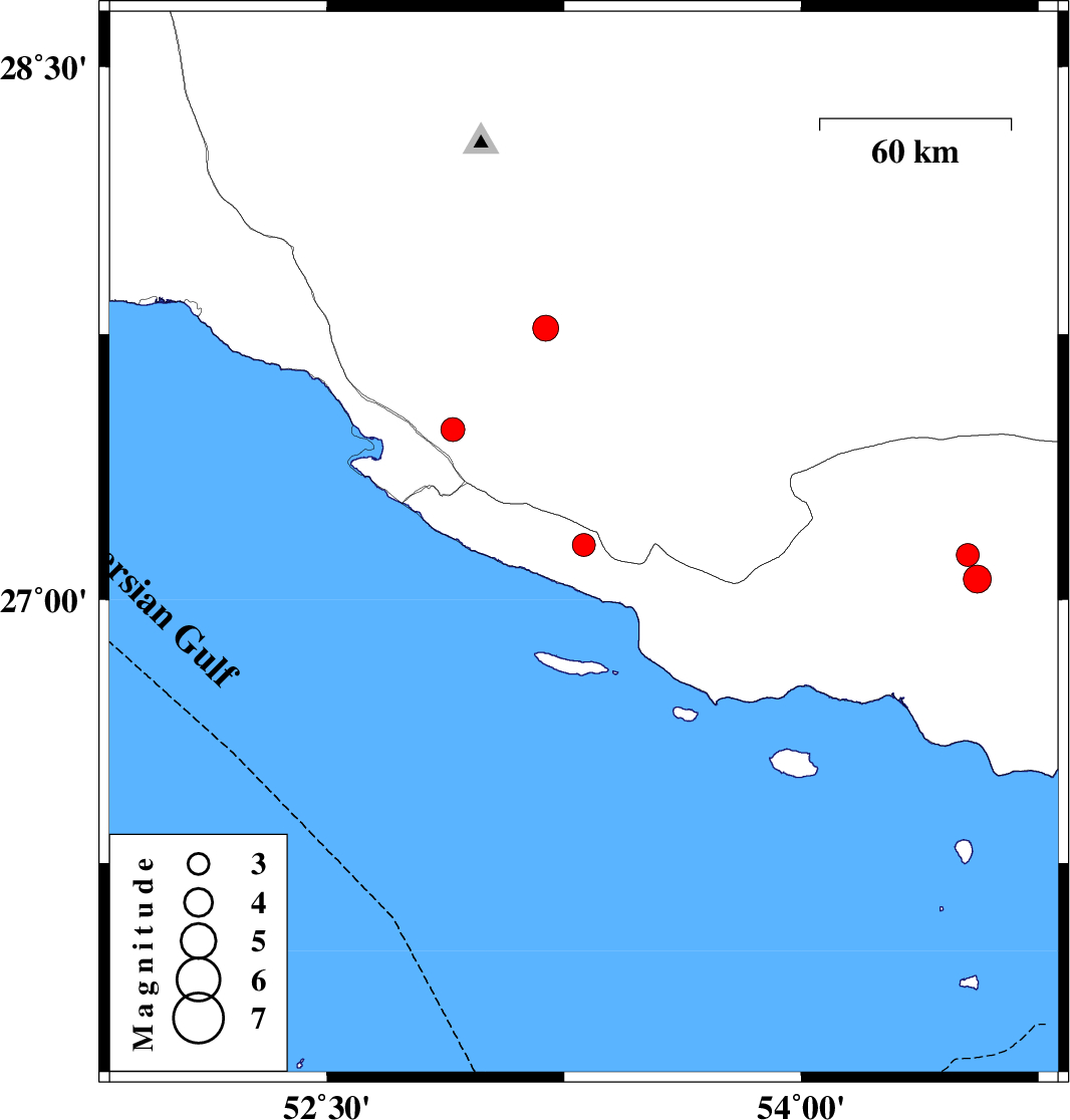 | 2022/05/17 | 03:23:47.9 | 07:53:47.9 | 27.481 | 52.898 | 8 | ML:3.4 | Fars Province, 7 km of Mehr | ||