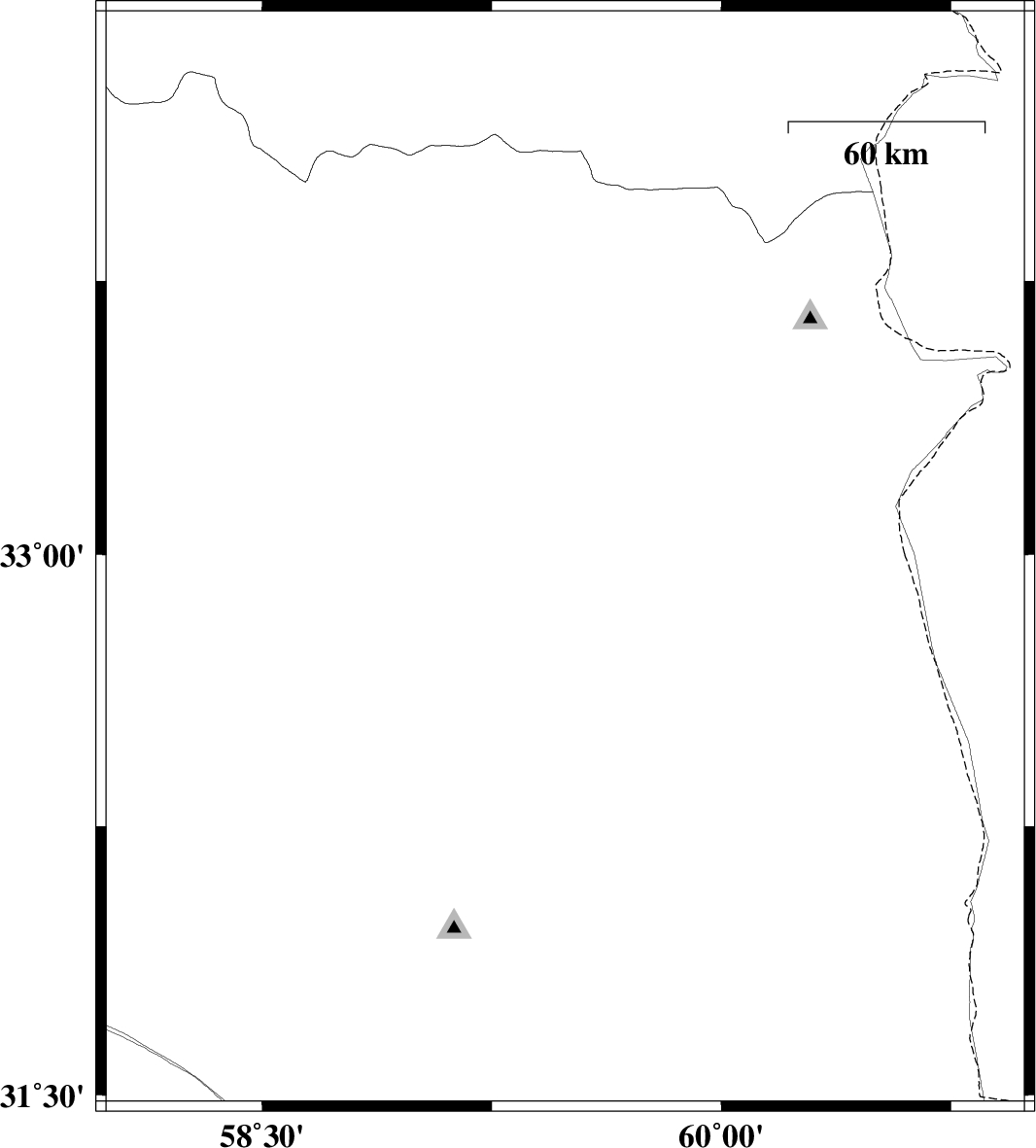 | 2022/06/04 | 20:00:02.2 | 00:30:02.2 | 32.984 | 59.49 | 15 | ML:3.2 | Khorasan(south) Province, 26 km -East of Birjand |